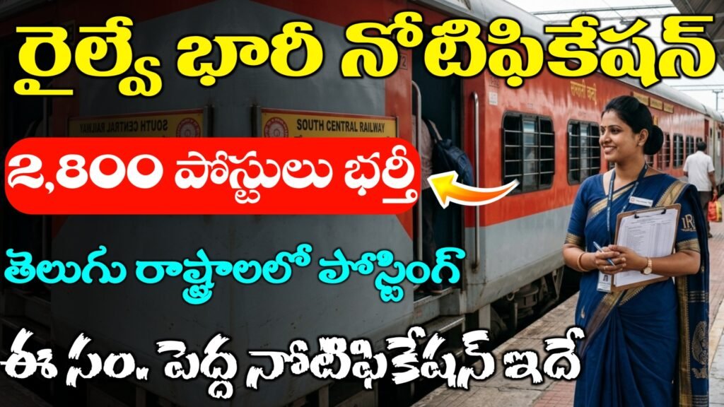 SCR Recruitment 2026: South Central railway – SCR నుండి ఇప్పుడే మనకి బంపర్ జాబ్స్ విడుదల. టోటల్ గా 2801 జాబ్స్ విడుదల. ఇవన్నీ