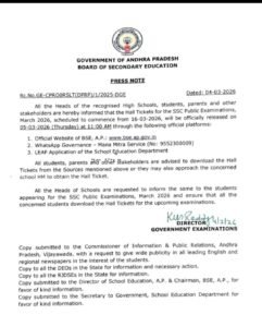 ఆంధ్రప్రదేశ్ టెన్త్ క్లాస్ హాల్ టికెట్స్ అనేవి ఈరోజు మనకు 11 గంటలకి రిలీజ్ చేయడం జరుగుతుంది. మనకు రాబోయే రోజుల్లో 10వ తరగతి విద్యార్థులకు సంబంధించిన పబ్లిక్ పరీక్షలు అనేవి మార్చ్16 మనకు స్టార్ట్ అవ్వడం జరుగుతుంది.