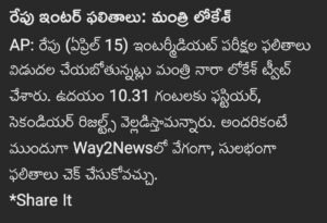 April 15th – Morning 10:31 AM కి ఈ Inter Results విడుదల చేయనున్నారు.