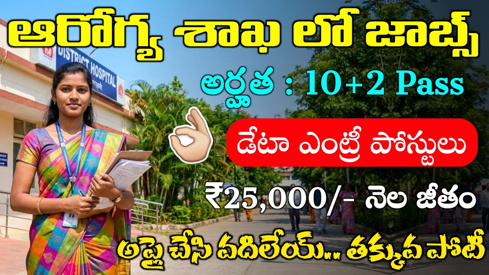 జాతీయ ఆరోగ్య మిషన్ లో భాగంగా మీరు అప్లికేషన్స్ పెట్టుకోవడానికి ఫిబ్రవరి 20 సాయంత్రం ఐదు గంటల వరకు కూడా మీకు అప్లై చేసుకోవడానికి అవకాశాన్ని మనకు అవకాశం కల్పించారు.