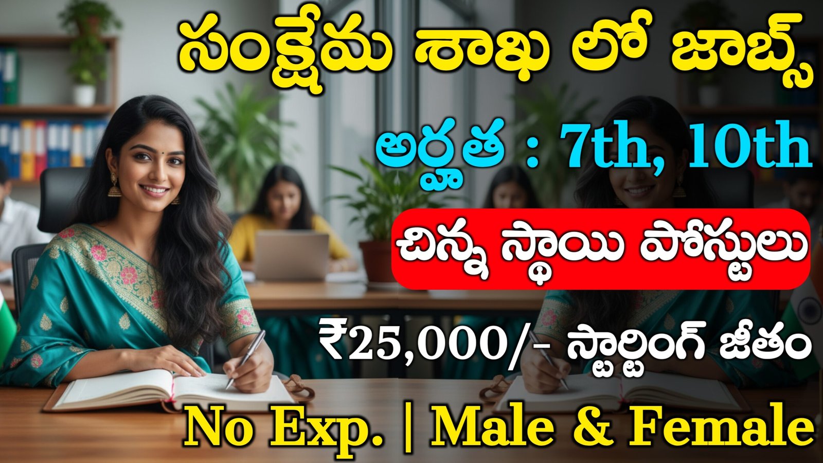 ఆంధ్రప్రదేశ్ ఉమెన్ డెవలప్మెంట్ మరియు చైల్డ్ వెల్ఫేర్ డిపార్ట్మెంట్ సంబంధించి మనం చూసుకున్నట్లయితే కనుక Cook, నైట్ వాచ్మెన్, హౌస్ కీపర్, మ్యూజిక్ టీచర్, యోగ టీచర్ వంటి ఔట్సోర్సింగ్ మరియు part time ఉద్యోగాలు విడుదల చేయడం జరిగింది.