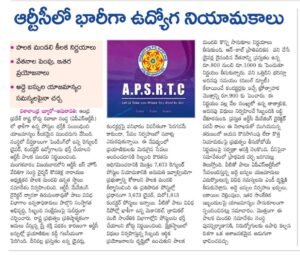 APSRTC – ఆంధ్రప్రదేశ్ రాష్ట్ర రోడ్డు రవాణా సంస్థలో భారీ మొత్తంలో ఖాళీగా ఉన్నటువంటి ఉద్యోగాల భర్తీ కోసం కొత్తగా నోటిఫికేషన్ రిలీజ్ చేయడానికి రాష్ట్ర ప్రభుత్వం సిద్ధంగా ఉన్నట్లు తెలుస్తోంది.