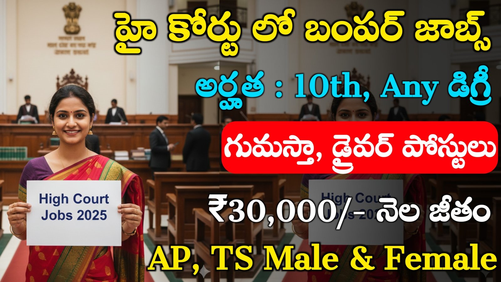 ఈ నోటిఫికేషన్ ద్వారా మనకు గుమస్తా డ్రైవర్ స్టెనోగ్రాఫర్ వంటి జాబ్స్ అనేవి బాంబే హైకోర్టులో పని చేయడానికి విడుదల చేశారు. ఈ యొక్క ఉద్యోగాలకు సంబంధించిన అప్లికేషన్స్ అనేవి మీరు డిసెంబర్ 15 నుంచి జనవరి 5వ తేదీ వరకు కూడా సాయంత్రం ఐదు గంటల వరకు కూడా మీకు సమయం ఉంచారు.
