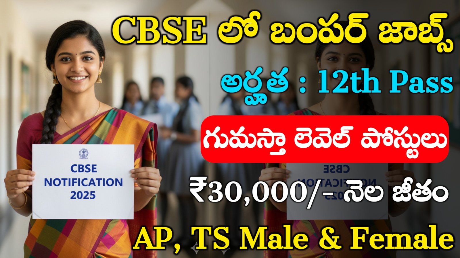 సెంట్రల్ బోర్డ్ ఆఫ్ స్కూల్ ఎడ్యుకేషన్ నుంచి అధికారికంగా మనకు వివిధ రకాల ఉద్యోగాలకు సంబంధించిన కొత్త నోటిఫికేషన్ రావడం జరిగింది. ఈ జాబ్స్ కి ఆంధ్రప్రదేశ్ మరియు తెలంగాణకు చెందిన ఆడవారు మగవారు ఎవరైనా కూడా అప్లై చేయొచ్చు.
