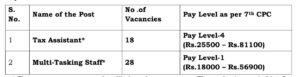 Income Tax Dept సంబంధించి మొత్తంగా మనకు 46 ఉద్యోగాలు అనేవి విడుదల చేయడం జరిగింది. వీటిలో భాగంగా మనం చూసుకున్నట్లయితే కనుక మల్టీ టాస్క్ ఉంది స్టాప్ మరియు ట్యాక్స్ అసిస్టెంట్ అనే జాబ్స్ అనేవి ఉన్నాయి.