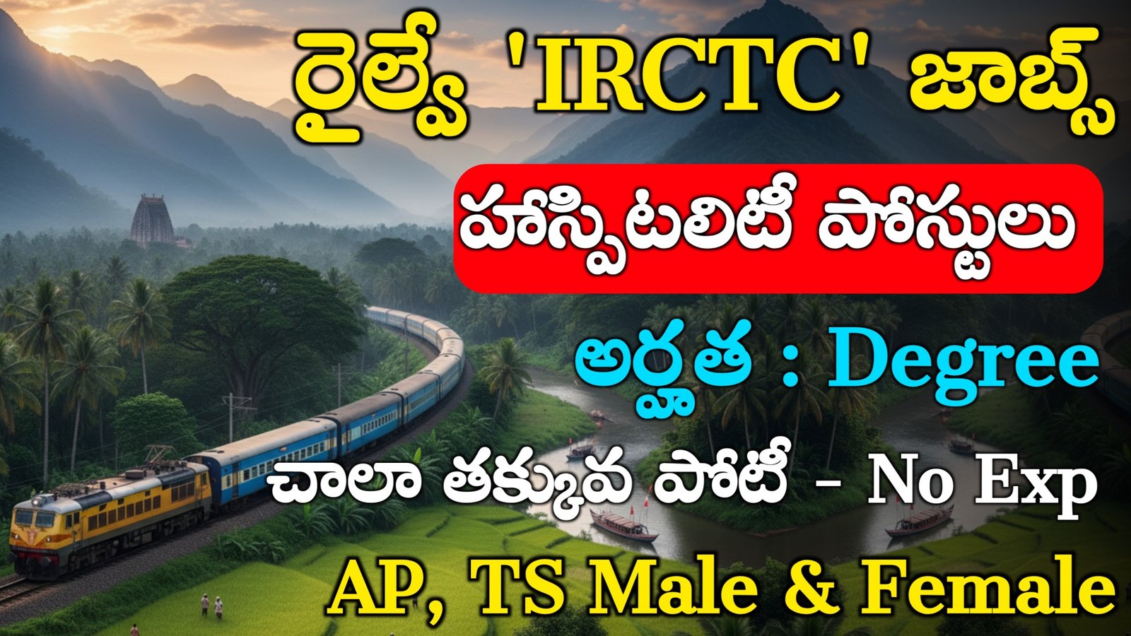 ఇండియన్ రైల్వే – IRCTC నుంచి ఈరోజే మనకు ప్రధానంగా హాస్పిటాలిటీ మానిటర్ అనే ఉద్యోగాల కోసం కొత్తగా జాబ్ నోటిఫికేషన్ విడుదల చేశారు. ఈ జాబ్స్ అన్నీ కూడా నిరుద్యోగులకు ఎంతగానో ఉపయోగపడతాయి కాబట్టి ఎవరైతే నిరుద్యోగులుగా బాధపడుతున్నారో వారందరూ కూడా తక్షణమే ఎటువంటి ఆలస్యం చేయకుండా ఈ జాబ్ కి సంబంధించిన వివరాలన్నీ కూడా తెలుసుకుని అప్పుడు మాత్రం మీరు కచ్చితంగా అప్లై చేసుకోవచ్చు.