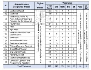 ఇందులో భాగంగా మనం చూసుకున్నట్లయితే గనక మెకానిక్ డీజిల్ మెషిన్ ఫిట్టర్ పైప్ ఫిట్టర్ ఎలక్ట్రీషియన్ ఇన్స్ట్రుమెంట్ మెకానిక్ ఎలక్ట్రానిక్స్ మెకానిక్ వెల్డర్ గ్యాస్ మరియు ఇతర పోస్టులకు సంబంధించి మొత్తం 320 పోస్టులు విడుదల చేయడం జరిగింది. అయితే ఇవన్నీ కూడా మనకు అప్రెంటిస్ పోస్టులు కావున మీకు పర్మినెంట్ జాబ్స్ ఏమీ ఇవ్వరు.