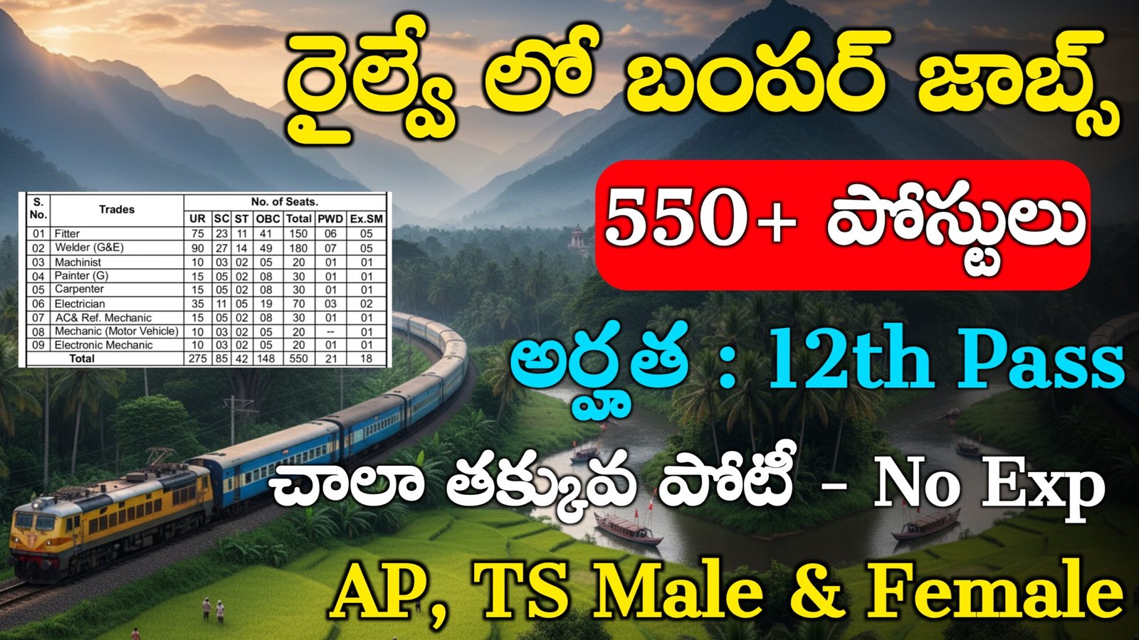 రైల్వేలో విడుదల చేసినటువంటి ఈ యొక్క 550 పోస్టులకు మీరు దరఖాస్తులనేవి పెట్టుకోవాలి అంటే నోటిఫికేషన్ ఒకసారి చదువుకోండి చదువుకున్న తర్వాత మీకున్న క్వాలిఫికేషన్ ఆధారంగా మీరైతే అప్లికేషన్స్ అనేవి పెట్టుకోవచ్చు.