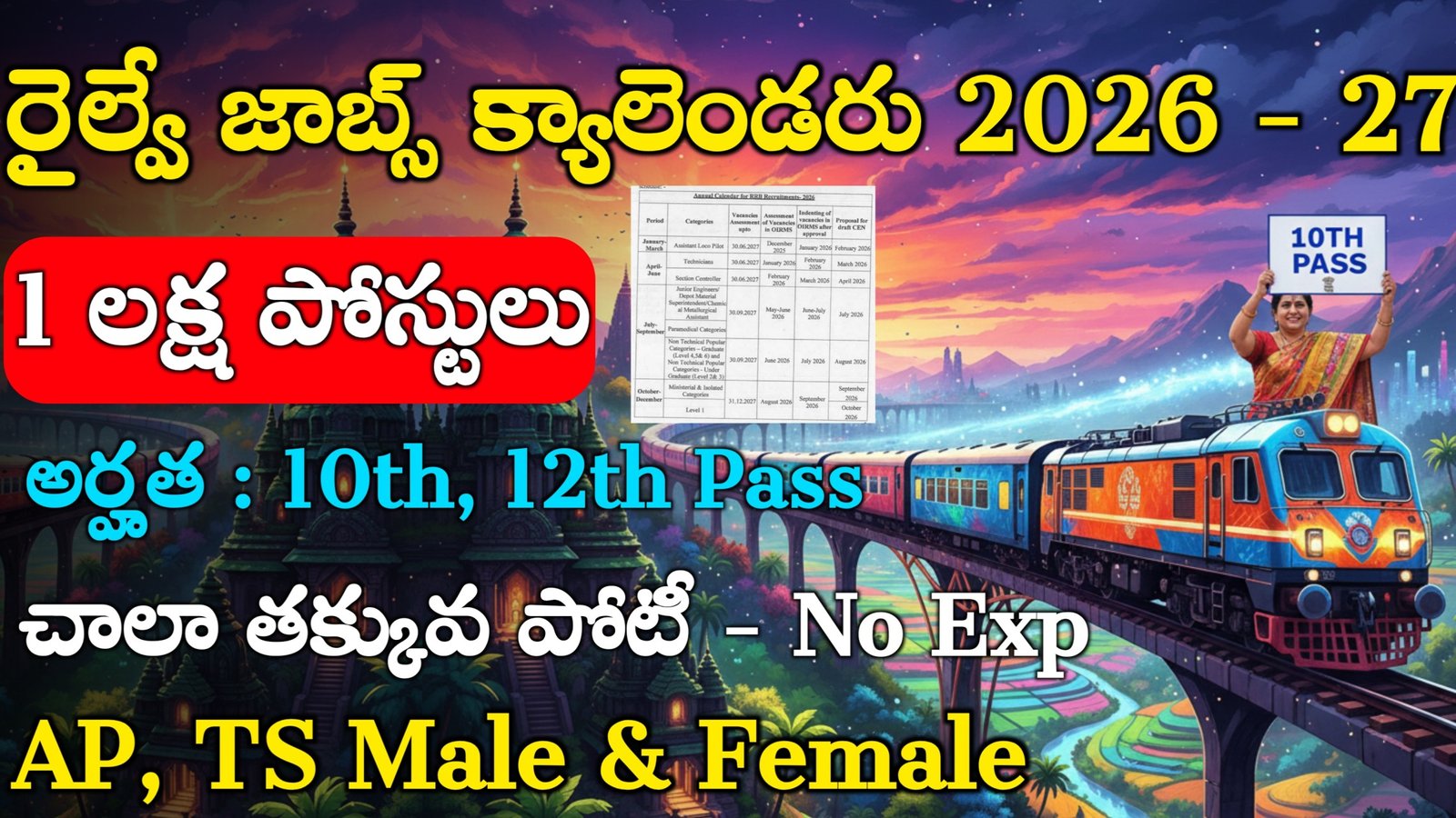 రైల్వే నుంచి నిరుద్యోగ అభ్యర్థులకి మిఠాయి లాంటి వార్త ఇప్పుడే రైల్వే శాఖ అధికారికంగా విడుదల చేసింది. ఆ గుడ్ న్యూస్ ఏంటి అంటే కనుక రైల్వే శాఖలో ఖాళీగా ఉన్నటువంటి ఉద్యోగాలకు సంబంధించినటువంటి జాబ్ క్యాలెండర్ విడుదల చేయడానికి చూస్తున్నట్లు అధికారికంగా తెలుస్తుంది.