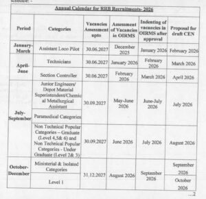 ఇప్పుడు చూసుకున్నట్లయితే గనక ప్రస్తుతం ఈ ఒక జాబ్ క్యాలెండర్ అయితే విడుదల చేయడం జరిగింది. మరి ఈ యొక్క జాబ్స్ క్యాలెండర్ లో భాగంగా మనకు వివిధ రకాల జాబ్స్ ఉంటాయి. ఆ జాబ్స్ ఏంటి అంటే గనక NTPC, జూనియర్ ఇంజనీరు సెక్షన్ కంట్రోలర్, అసిస్టెంట్ లోకో పైలట్, ఐసోలేటెడ్ మరియు మినిస్ట్రీయల్ విభాగంలో, గ్రూప్ డి విభాగంలో కూడా బంపర్ వేకెన్సీస్ ఉన్నాయి.