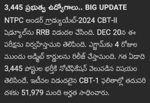 RRB NTPC అండర్ గ్రాడ్యువల్ 20 24 కి సంబంధించినటువంటి CBT II సంబంధించినటువంటి షెడ్యూల్ను రైల్వే శాఖ అధికారికంగా విడుదల చేయడం జరిగింది.