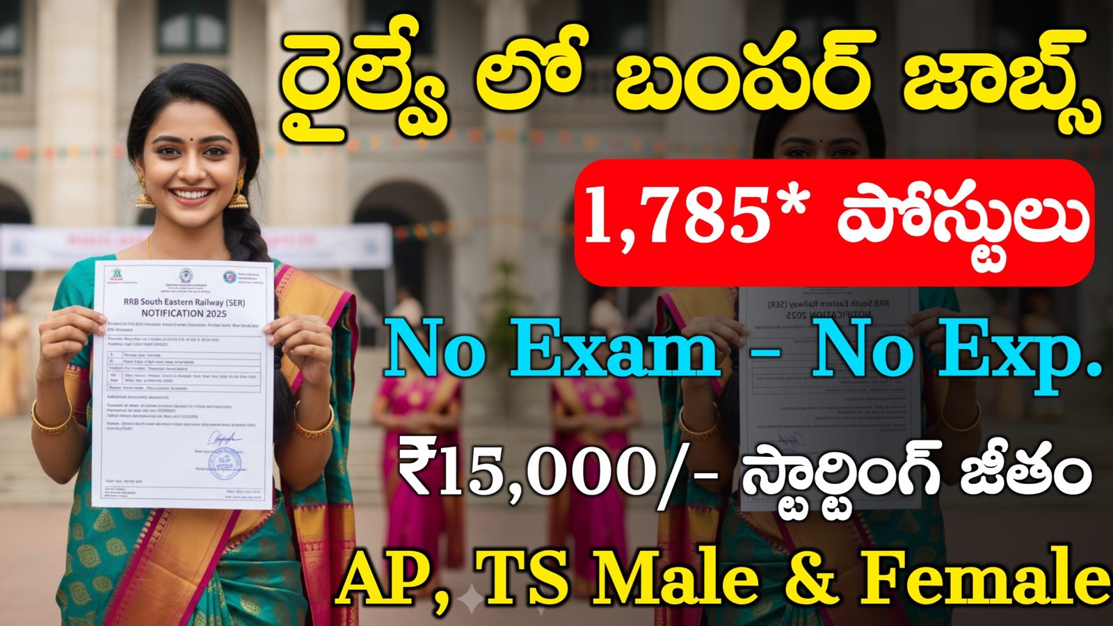 రైల్వే అప్రెంటిస్ సంబంధించిన 1785 పోస్టులకు ఎటువంటి పరీక్ష అనేది లేకుండా డైరెక్ట్ గా మీరు అప్లై చేసుకున్నట్లయితే కనుక మీకు మెరిట్ మార్కులు డాక్యుమెంట్ వెరిఫికేషన్ ఆధారంగా డైరెక్ట్ గా తీసుకోవడం జరుగుతుంది.