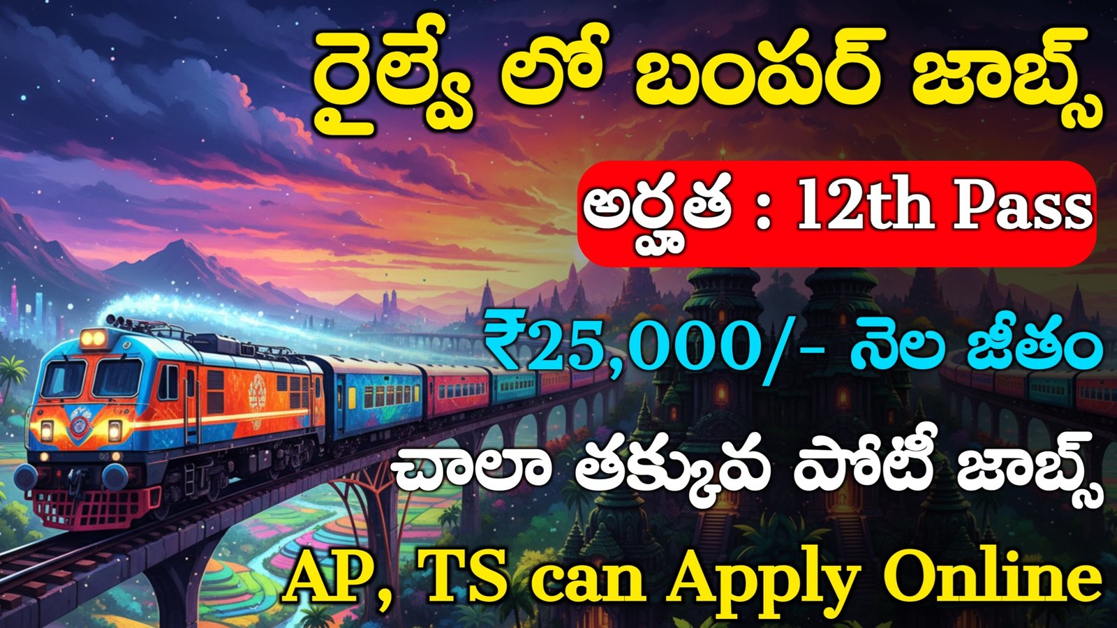 ఈ యొక్క రైల్వే ఉద్యోగాలకు సంబంధించి మీరు అప్లికేషన్స్ పెట్టుకోవడానికి 10th, 12th అర్హతలు ఉన్న వారందరూ కూడా అప్లై చేసుకోవచ్చు.