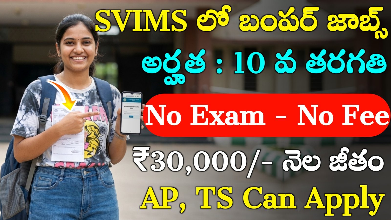 Sri Venkateswara institute of medical sciences – SVIMS నుండి మనకి ఈ జాబ్స్ అనేవి రిలీస్ చేయడం జరిగింది.మన AP, TS వాళ్ళు APPLY చేయచ్చు.