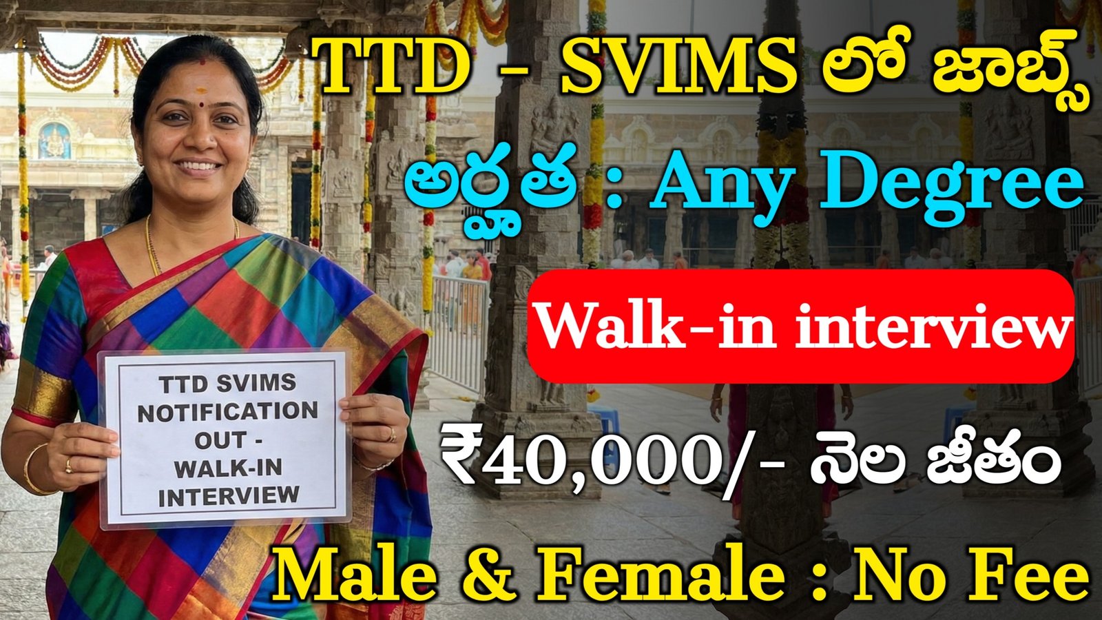 తిరుమల తిరుపతి దేవస్థానం సంబంధించినటువంటి SVIMS సంస్థ ద్వారా మనకు వివిధ రకాల జాబ్స్ అనేవి కేవలం ఇంటర్వ్యూ చేసి జాబ్ ఇచ్చే విధంగా నోటిఫికేషన్ జారీ చేశారు.