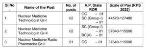 SVIMS ద్వారా మనకి మొత్తం 08 పోస్టులు విడుదల చేయడం జరిగింది.టెక్నీషియన్, న్యూక్లియర్ మెడిసిన్ టెక్నీషియన్ గ్రేడ్ 2, న్యూక్లియర్ మెడిసిన్ రేడియో ఫార్మసిస్ట్ గ్రేడ్ 2 వంటి జాబ్స్ ఉన్నాయి.