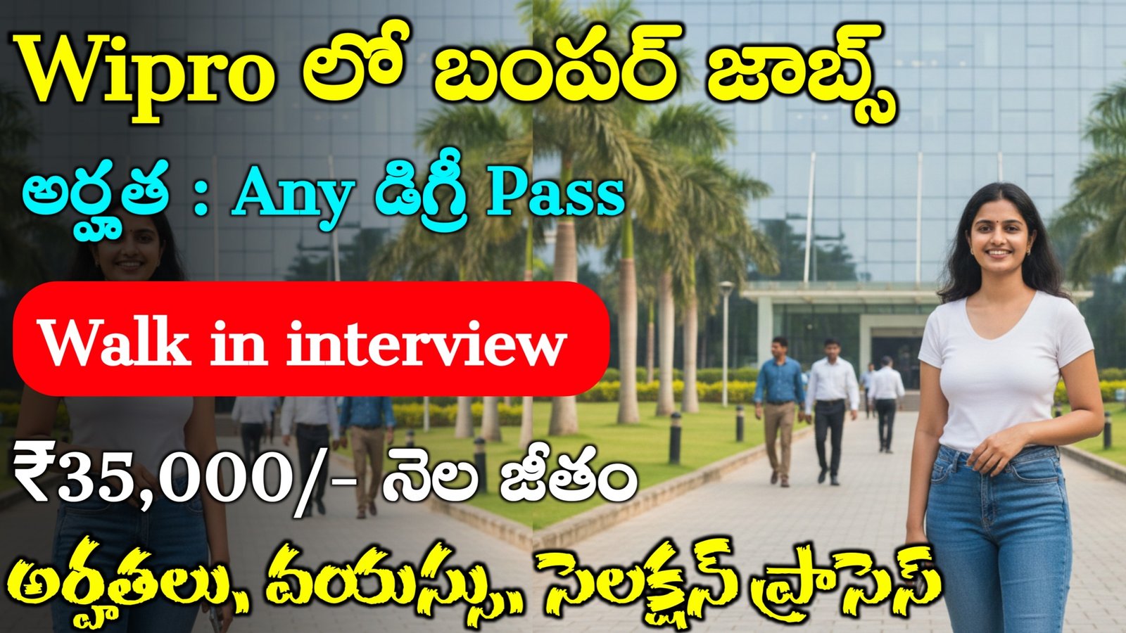 Wipro అనేది ప్రముఖ ఐటీ సంస్థలలో అగ్రస్థానంలో ఉండేటటువంటి ఒక సంస్థగా చెప్పొచ్చు. ఇన్ఫర్మేషన్ టెక్నాలజీ అనేది ప్రస్తుత కాలంలో చాలా ఉన్నత స్థాయి పొజిషన్ లో ఉంది. అటువంటి విప్రో కంపెనీలో నోటిఫికేషన్ రావడం అంటే చాలా మంచి విషయం గా చెప్పవచ్చు. ఈ నోటిఫికేషన్ కి మీకు ఏ విధమైన ఫీజు లేదో ఎగ్జామ్ లేదు డైరెక్ట్ గా మీరు ఇంటర్వ్యూకి నువ్వు ఇప్పుడు కంపెనీలోకి వెళ్ళవలసి ఉంటుంది అక్కడ మీకు ఇంటర్వ్యూ చేసిన తర్వాత జాబ్ ఇస్తారు.